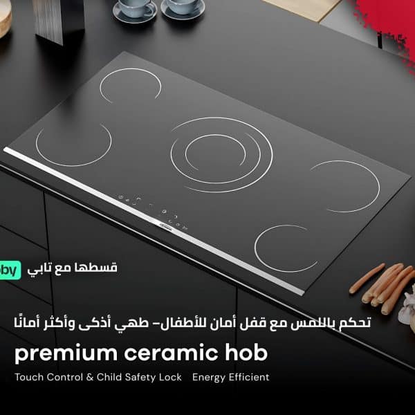 General Gold 90cm 5-Burner Built-In Electric Cooktop – Vitroceramic Surface with Touch Control​