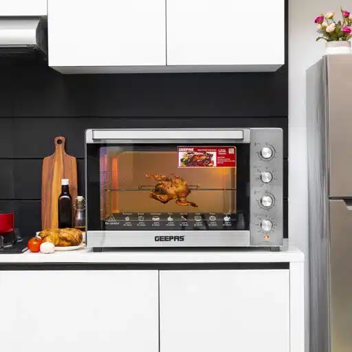 Geepas 120L Multi-Function Oven GO34057 | 2800W Power | Rotisserie & Convection Function| 120 Minutes Timer| 7 Heating Stages| Stainless Steel Design| 2 Years Warranty