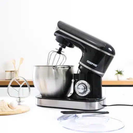 Geepas Kitchen Machine GSM43040 | 8.5L Stainless Steel Bowl Stand Mixer| 1500W Powerful Motor| 6 Speed Control | Durable ABS Body| 3 Mixing Attachments| 2 Years Warranty
