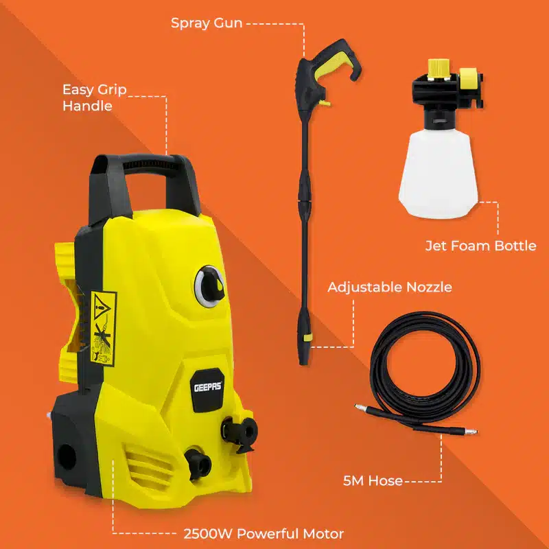 Be the first to review “Geepas GCW19029 High Pressure Washer | 105BAR Power Washer with 2500W Motor | Ideal for Car, Bike, Patio & Home Cleaning | Compact Design | High Efficiency Performance”