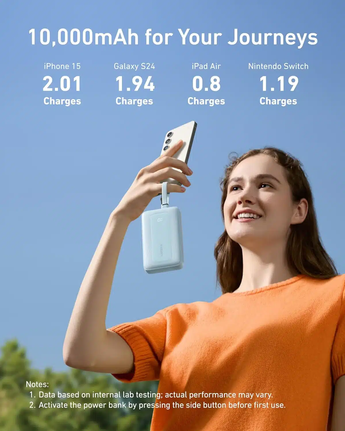 - 10,000mAh Portable Power: Perfect for travel, this compact power bank weighs only 7.65 oz. It provides 2 full charges for an iPhone 15, keeping your adventures powered without the bulk.