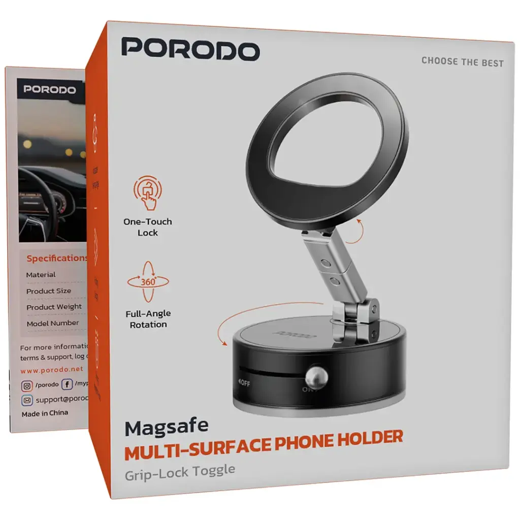 Porodo MagSafe Multi-Surface Phone Holder with Grip-Lock Toggle