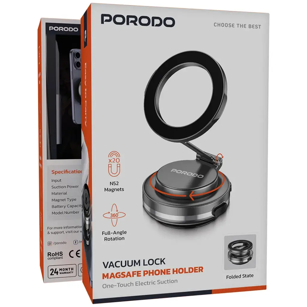 Porodo Vacuum Lock MagSafe Phone Holder – Black