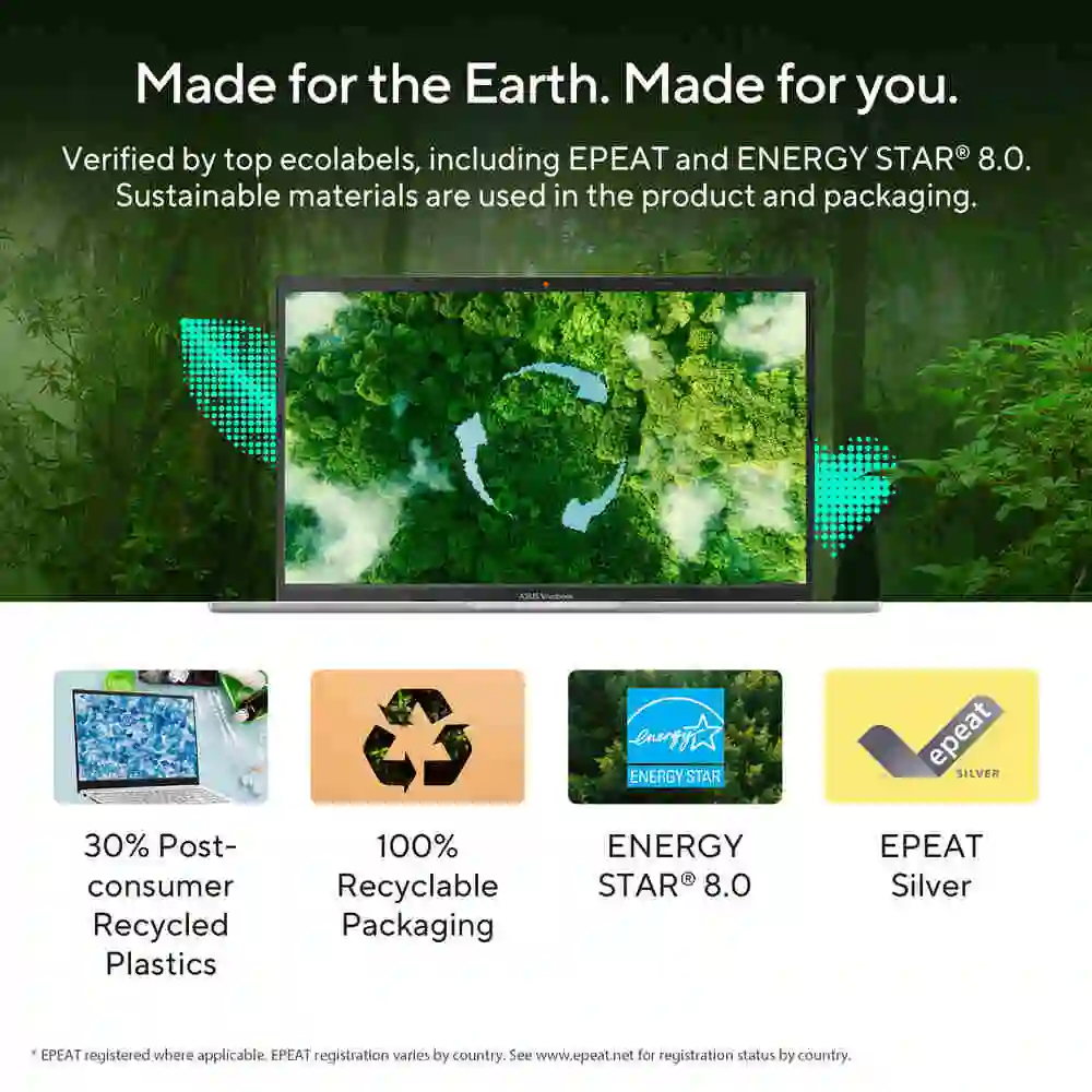 ابتوب ASUS Vivobook 15 M1502YA-NJ116W بمعالج AMD Ryzen R7-7730U، وذاكرة وصول عشوائي 16 جيجابايت، وقرص تخزين SSD بسعة 512 جيجابايت
