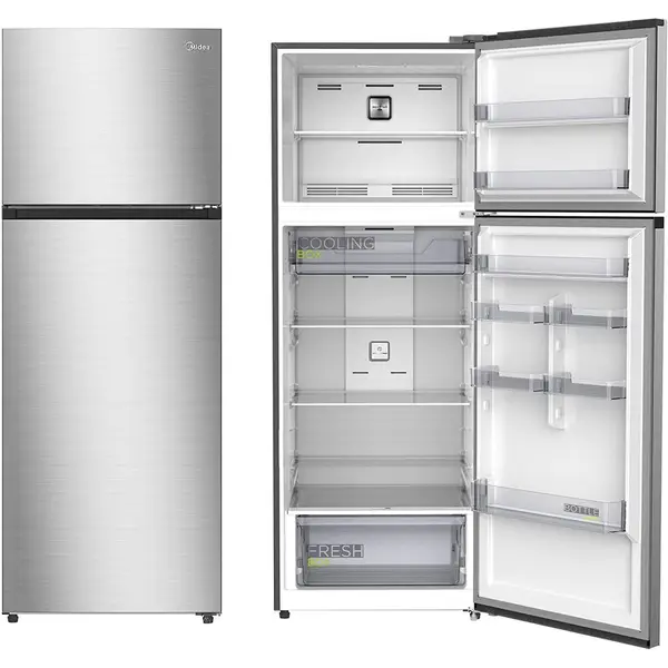 ثلاجة ميديا ببابين وفريزر علوي بسعة اجمالية 580 لتر MDRT580MTE46، ثلاجة فريزر ببابين مانعة لتكوين الثلج مع مستشعر ذكي وتحكم في الرطوبة، اكتيف سي فريش، تدفق هواء متعدد، تحكم الكتروني، فضي، كبير