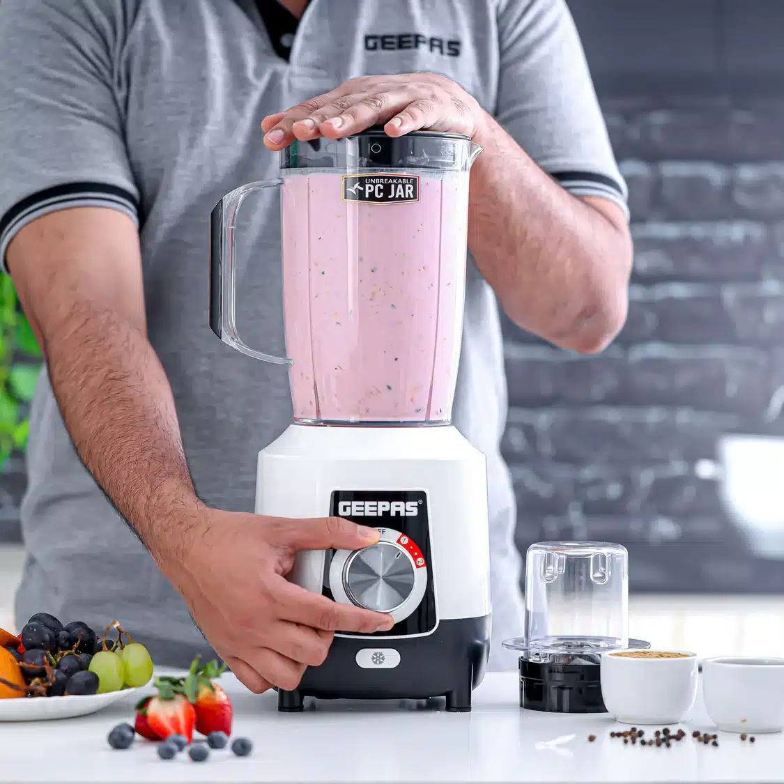 استمتع بمزج العصائر، وسحق الثلج، وطحن التوابل مع خلاط جيباس GSB44027T القوي ثنائي الوظائف. يتميز بمحرك قوي بقدرة 600 واط وشفرات من الفولاذ المقاوم للصدأ، مما يضمن لك مزجًا سريعًا وفعالًا في كل مرة. يُعدّ وعاء البولي كربونات غير القابل للكسر بسعة 1.8 لتر مثاليًا لتحضير حصص عائلية، بينما تُسهّل المطحنة بسعة 0.3 لتر تحضير التوابل الطازجة أو القهوة. يمنحك التحكم بسرعتين مع خاصية النبض وزر توربو لسحق الثلج قوامًا مثاليًا للمشروبات والأطعمة. صُمم هذا الخلاط مع نظام حماية من الحرارة الزائدة لضمان السلامة والأداء طويل الأمد، وهو مثالي للاستخدام اليومي في المطبخ.