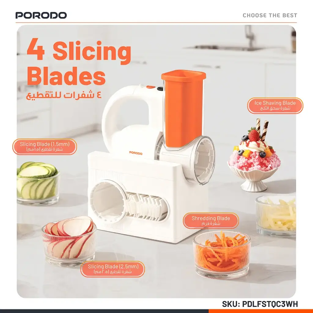 صانع السلطات متعدد الوظائف Porodo Lifestyle Fresko مع 4 شفرات تقطيع – أبيض