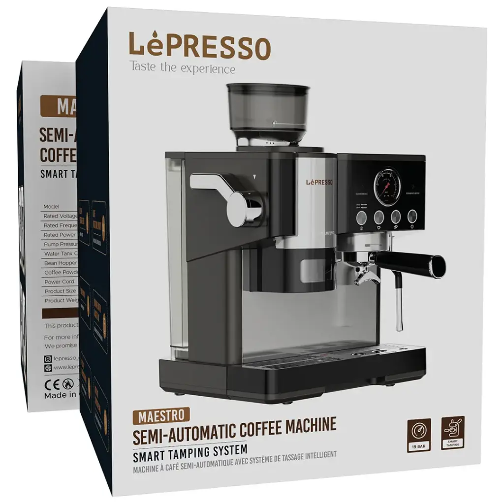 تقدم ماكينة القهوة شبه الأوتوماتيكية Lepresso تجربة قابلة للتخصيص بشكل كبير في تحضير القهوة. بفضل قوتها المقدرة البالغة 2300 واط وضغط المضخة البالغ 19 بار، تضمن لك قهوة إسبريسو غنية وكاملة النكهة في كل مرة. تسمح سعة خزان المياه 2.8 لتر وقادوس حبوب البن سعة 250 جرامًا بتقديم عدة حصص دون الحاجة إلى إعادة التعبئة بشكل متكرر. تعمل مع الكميات المفردة والمزدوجة من مسحوق القهوة: 12 جرامًا و18 جرامًا. يوفر مقياس الضغط المدمج إمكانية التعديل المناسب، بينما يضمن نظام الدك الذكي اتساقًا في الاستخلاص. يمكن تشغيل الماكينة من خلال لوحة التحكم سهلة الاستخدام عند تحضير جرعة واحدة أو جرعتين. خزان المياه وخزانات النفايات قابلة للإزالة لضمان سهولة التنظيف والصيانة. تأتي ماكينة القهوة شبه الأوتوماتيكية Lepresso مع قابس ثلاثي الأطراف في المملكة المتحدة وتوفر العديد من خيارات التخمير، بحيث يمكن لأولئك الذين يفضلون الحياة السهلة في المطبخ وفنجانًا جيدًا من القهوة استخدامها