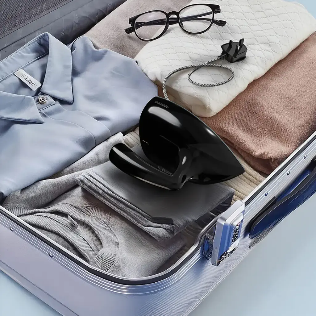 مكواة بخار صغيرة محمولة من بورودو لايف ستايل أيرونيكس بمقبض من الباكليت – أسود